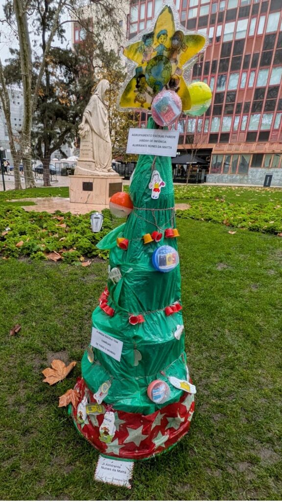 As part of the Cascais Environmental Education and Awareness Program, elementary school students in Cascais are challenged to use their creativity to decorate Christmas tree structures using recycled and eco-friendly materials. The Eco-Christmas exhibition aims to raise awareness about the excessive production of waste and the consequences of its environmental impacts, promoting the 5 R’s policy: Refuse, Reduce, Reuse, Recover, and Recycle!